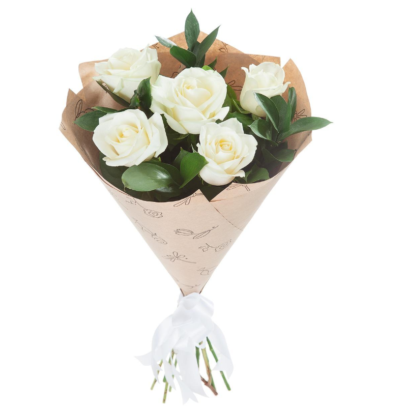 Букет из 5 белых роз в крафте